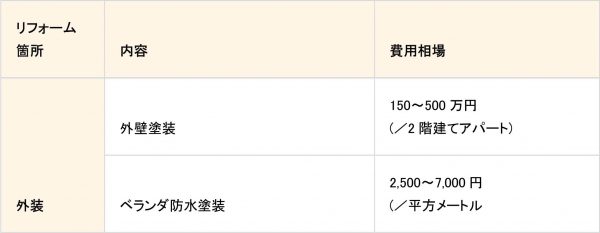 ※使用する設備や塗料、リフォーム前の物件の状態によって費用が変動するので、あくまで一つの目安として、ご参考にして頂ければと思います。